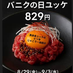 8/29(金)〜9/3(水)限定|馬肉の日ユッケ